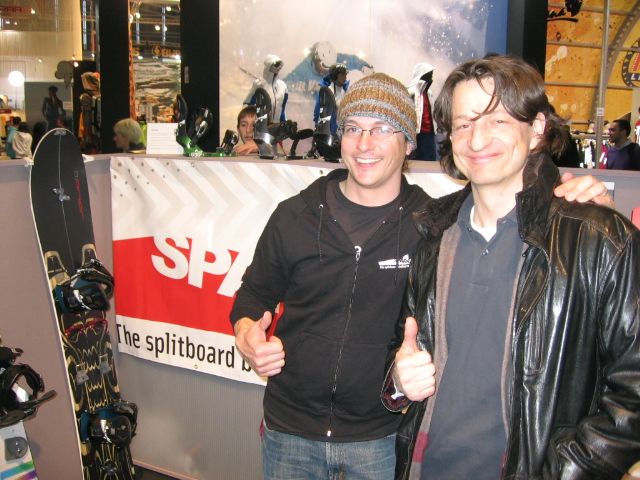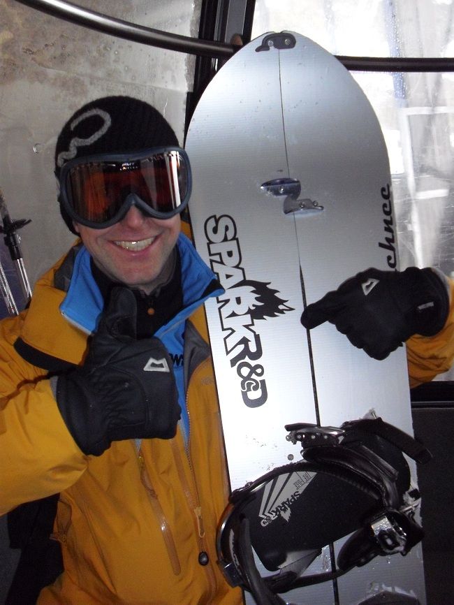 Select winners of the ISPO BrandNew Awards were invited to the on snow demo at Garmisch- Partenkirchen in Southern Germany on January 28-29. The Fuse bindings were selected, but the dates overlapped the week that we were in Denver for SIA. So we called up our German friend Markus Reichard from Wildschnee (www.wildschnee.de), who makes custom 2 and 3 piece splitboards, and asked him to represent Spark R&D. To our delight, he said he would! He made a custom board with our logo, put our logo on his jacket (we don’t even have logo jackets!), took some days off of work, brought his team rider Tobi, and drove the two hours to the demo. We are forever indebted to him and are so psyched that he was willing to help us out at this great event. If you ever meet him, buy this guy a beer for us.