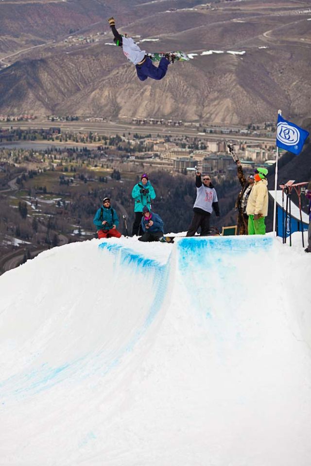 A few weeks ago I read the post from Transworld Snow about Malay Day down in Beaver Creek, CO. Cruising through the photo gallery I noticed an image of Travis Young, winner of the Biggest Method category, riding a split with some Spark R&D Blaze bindings.