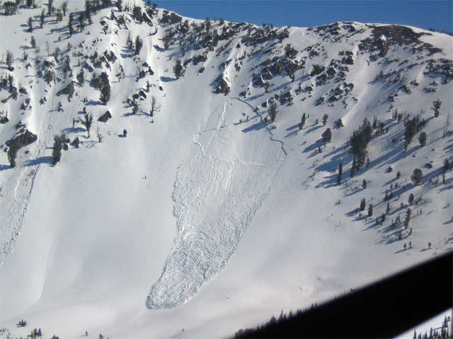 • Above freezing temperatures and/or rain cause a slab of snow to become unglued to the underlying surface.  Wet slabs can be very destructive as the water in the snow pack means these slides are heavier and carry more mass.