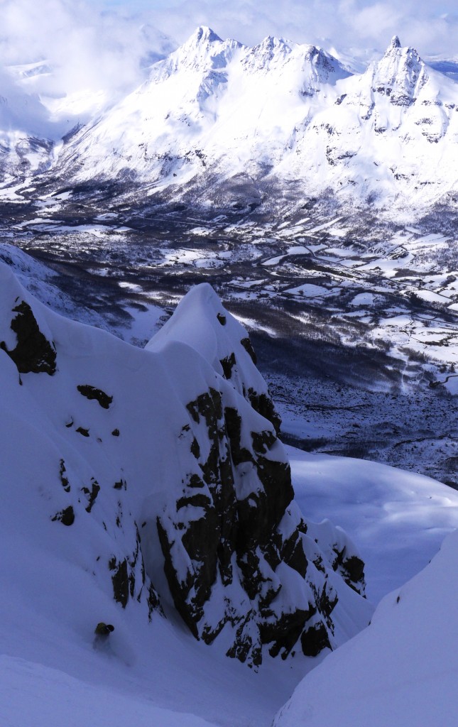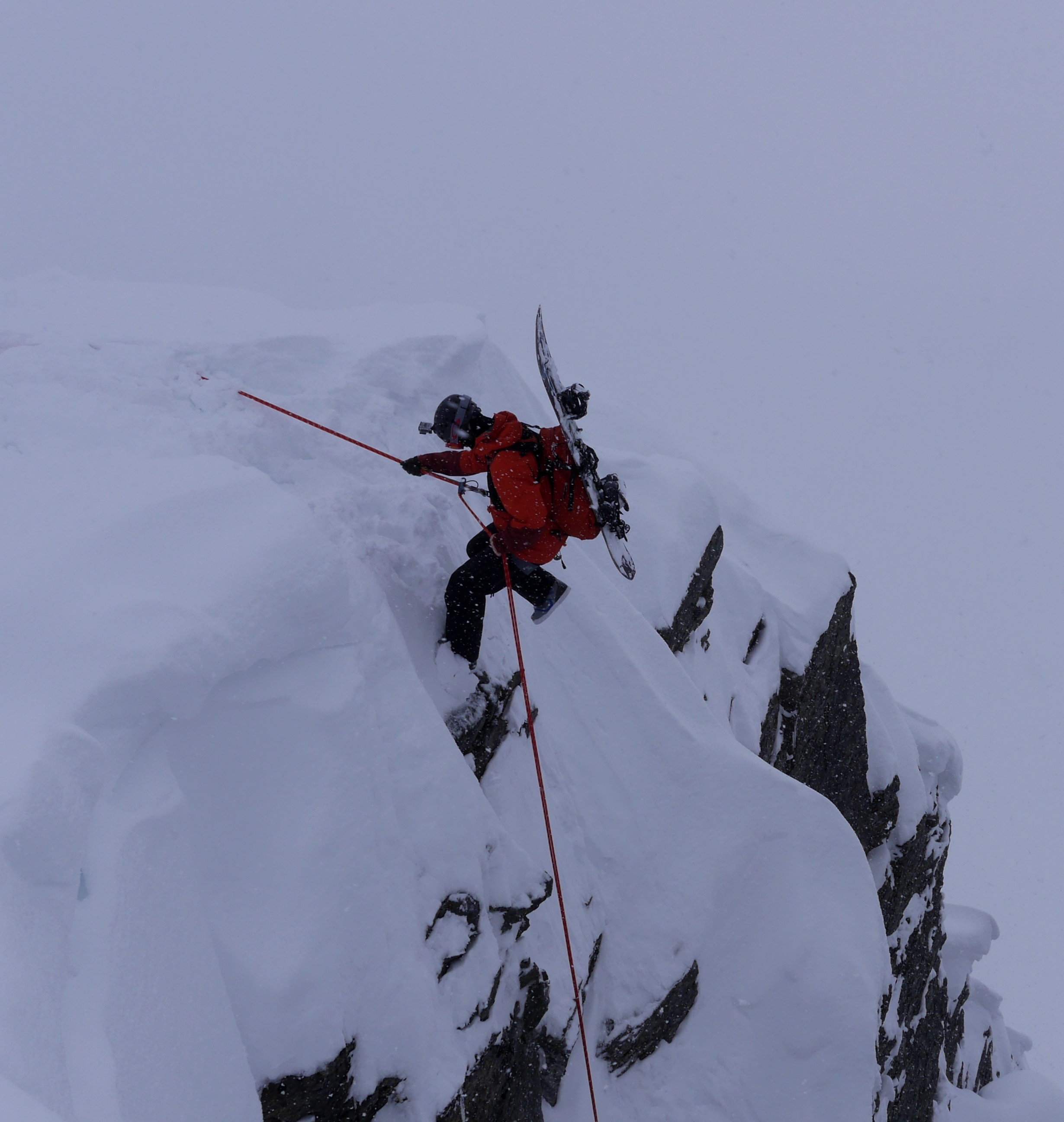 Through a haze of jetlag I hear Miikka Haast say, “…it starts with a 20 meter rappel into a 50 degree, 3-meter-wide couloir…yes, let’s do that…” Sounds like a great first run in Norway!