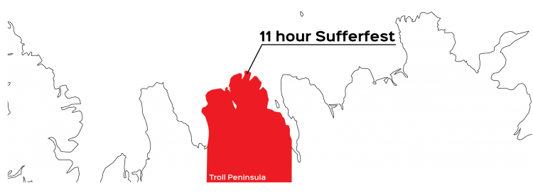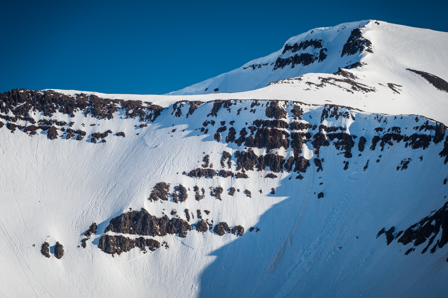 Arriving at the start of May, we were greeted with the news from locals that it had been one of the mildest winters in recent memory. Those idealistic plans of riding from the snowfields to the ocean seemed to be gone before we hit the skin track. Not to be deterred, we ventured north towards Iceland’s second largest city Akureyri and the Troll Peninsula.