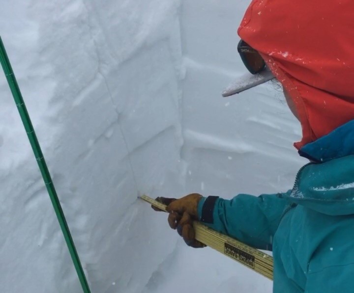 When you start digging, note the most obvious things you’re seeing in relation to the snow. Problem layers can often be seen or felt as you start to dig out your pit. An ice layer is going to feel hard as you try to dig through it, just as noticing a clean sheer on a buried surface hoar layer can grab your attention as it continues to break at the same spot. Note what jumps out at you immediately. Is it what you expected or is it something you weren’t anticipating? Every step in digging your pit can give you information on how the snowpack is currently reacting. Observe any possible problem layers and mark them for further investigation on both your observation wall and in your backcountry journal.