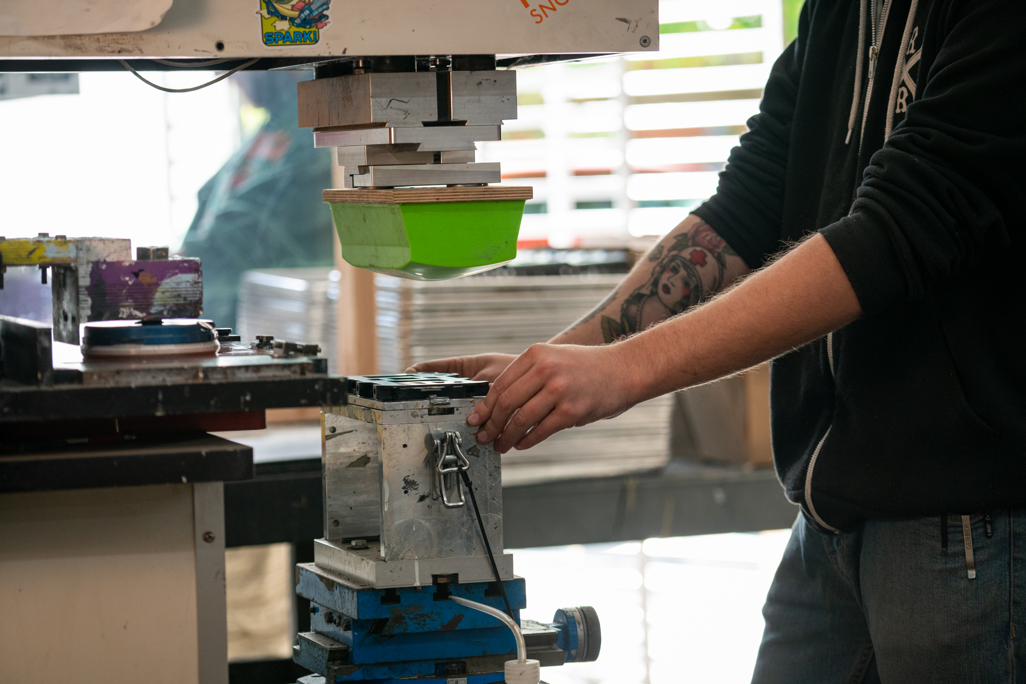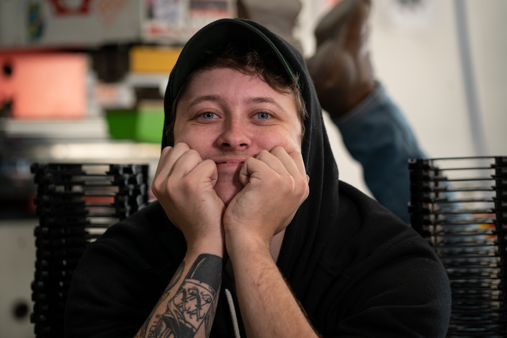 Meet Tyler Bakke, pad printer extraordinaire turned machine operator! This midwestern gem of a human is known for his echoing laugh, mellow demeanor, and ink – both on his arms and on our baseplates.