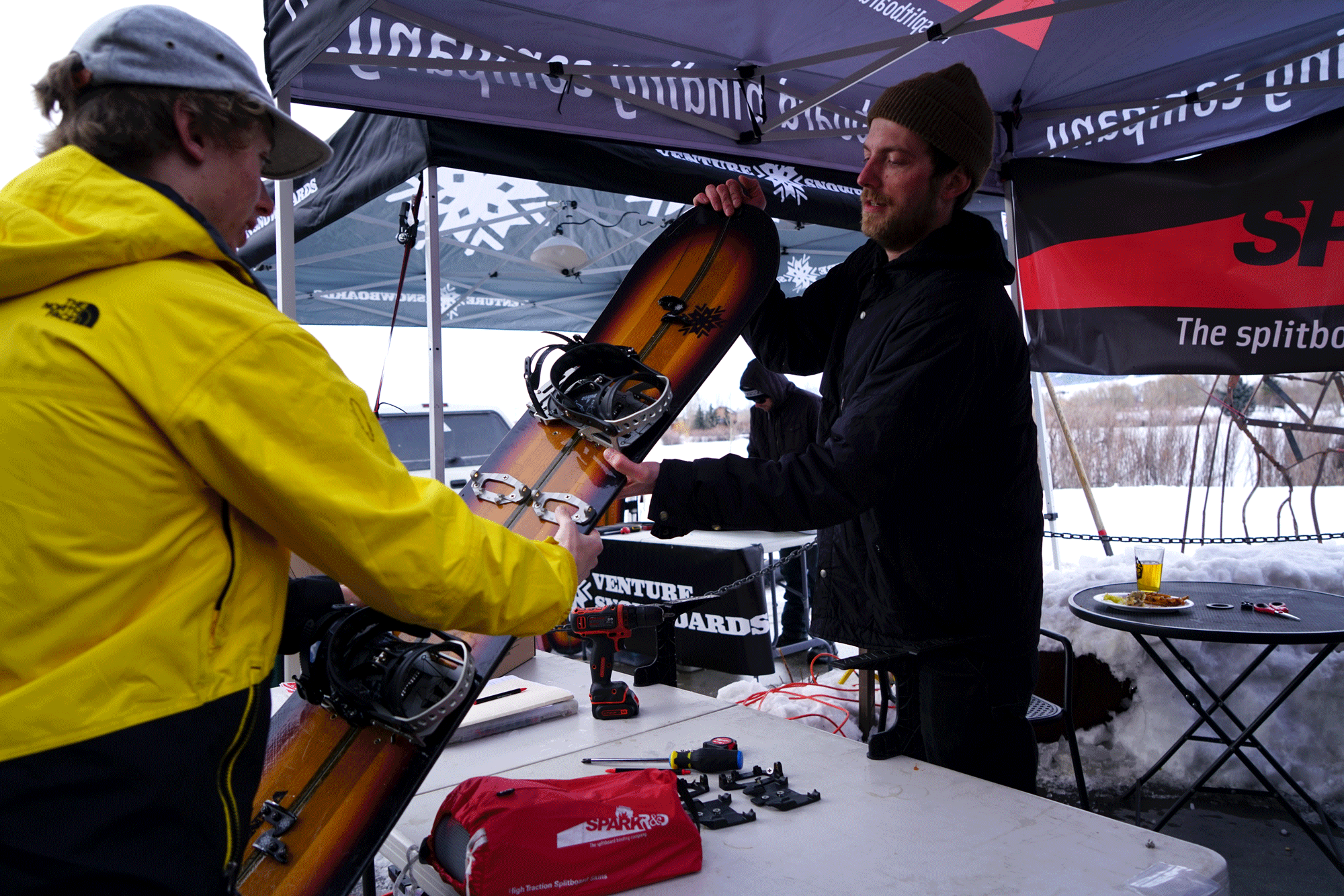 Almost always. Every splitfest is a little different but the general idea is there are specific times to demo gear and mingle. This is an opportunity to talk to the brands about the gear and chat with other splitboarders. Depending on the event you’ll either demo the gear for the next day or the entire weekend.