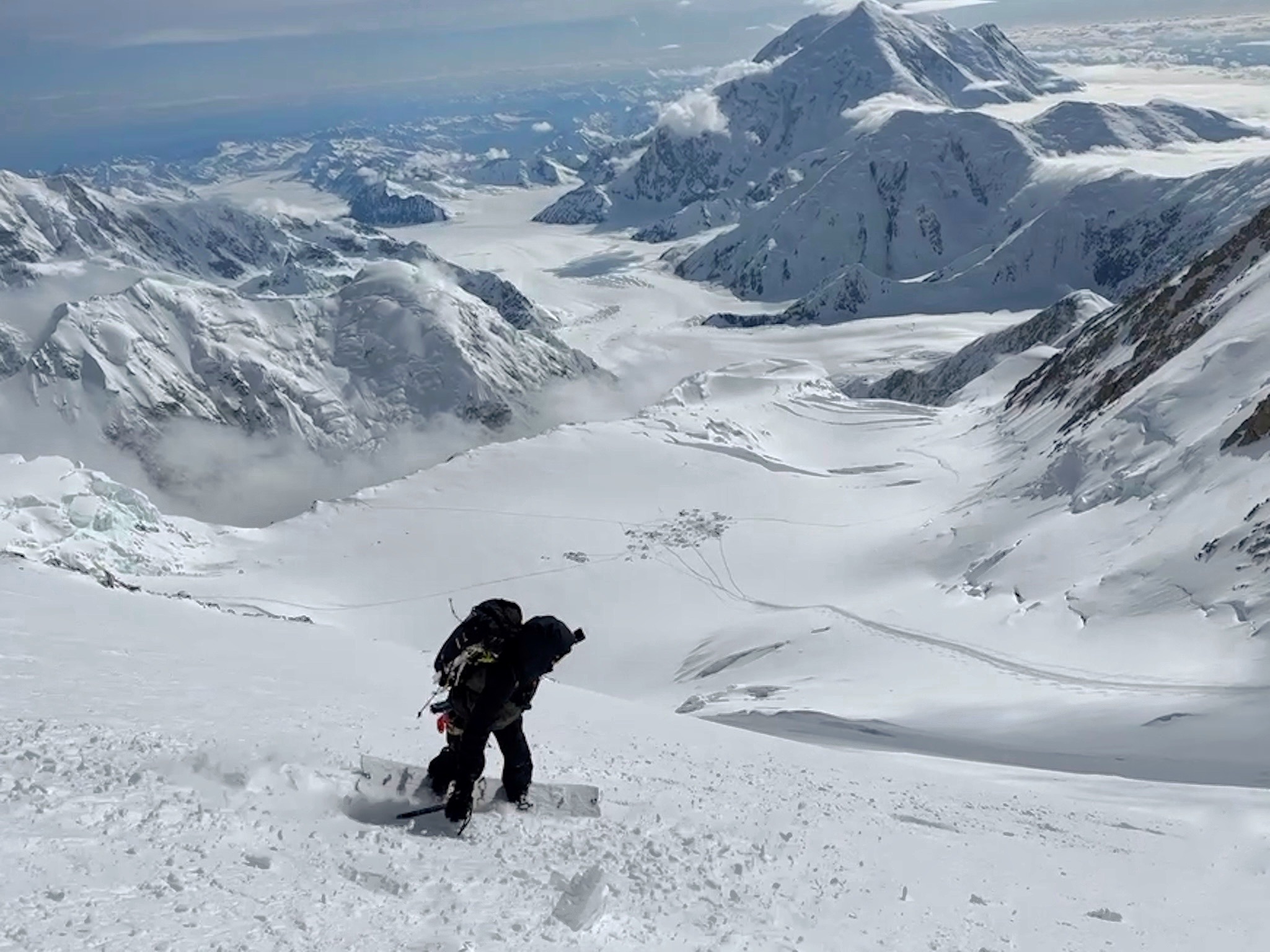 After a while, we strapped into our splitboards to head down. Down to our reality: which is a 30-hour exit mission to catch a flight to Talkeetna before the rains ravage the mountain.