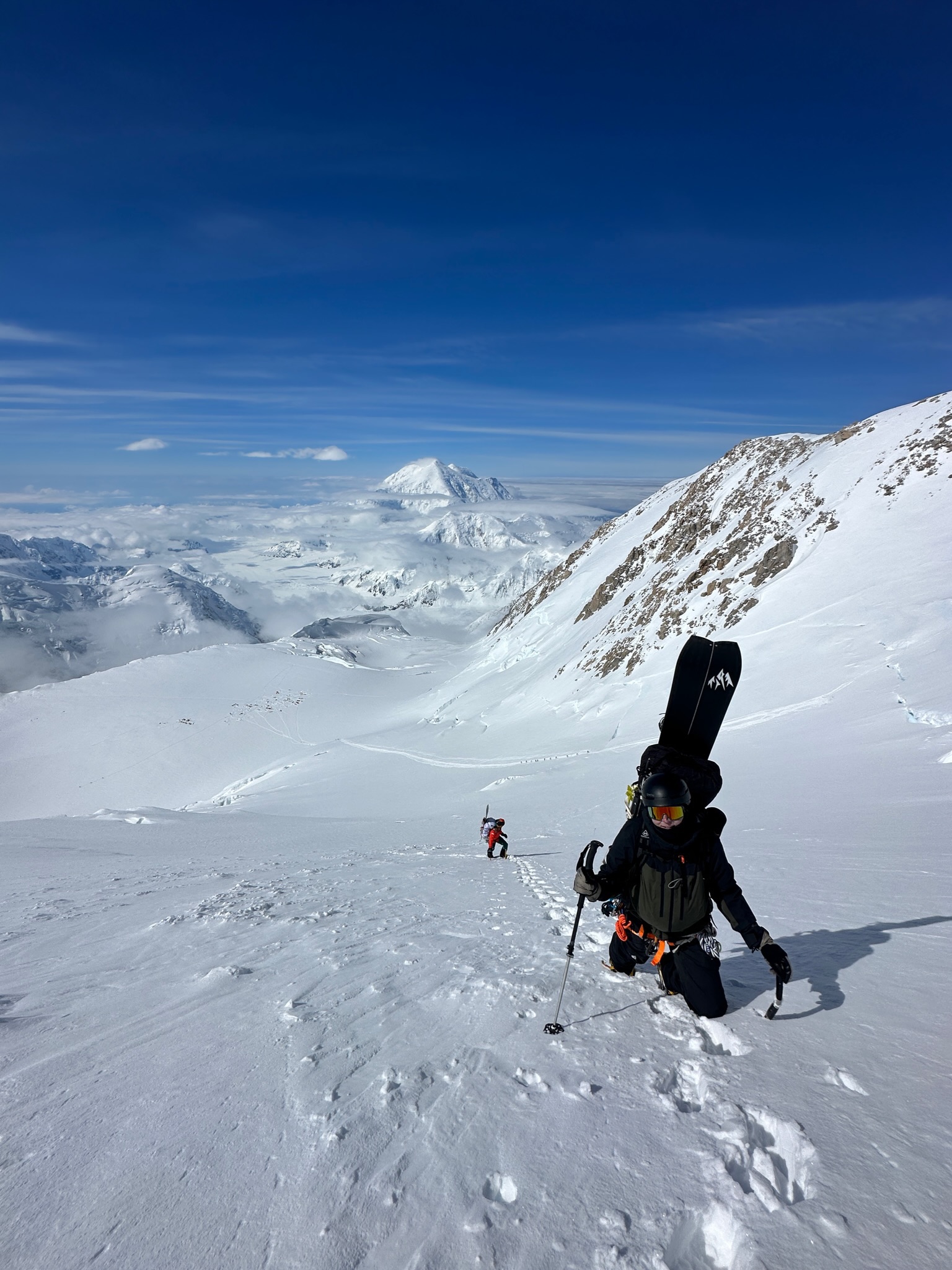 We are here in this surreal landscape, the three of us, to not only attempt a summit of Denali but to also learn new skills, glacier camp, and most importantly raise awareness and funds for the non-profit organization STAY: Somebody’s Thinking About You. STAY aims to break stigmas surrounding mental illness in action sports, provide educational resources, and help people communicate better about mental health topics including anxiety and suicide prevention. The organization is snowboarder-founded, and as a snowboarder, I am proud to be part of a community that is supportive and also not afraid to acknowledge an issue like mental health. I personally find strength in meditation, visualization, and positive self-talk. I would not have the grit and confidence in my snowboarding, or day-to-day life, without these tools and I hope to help normalize these attitudes and practices throughout society.