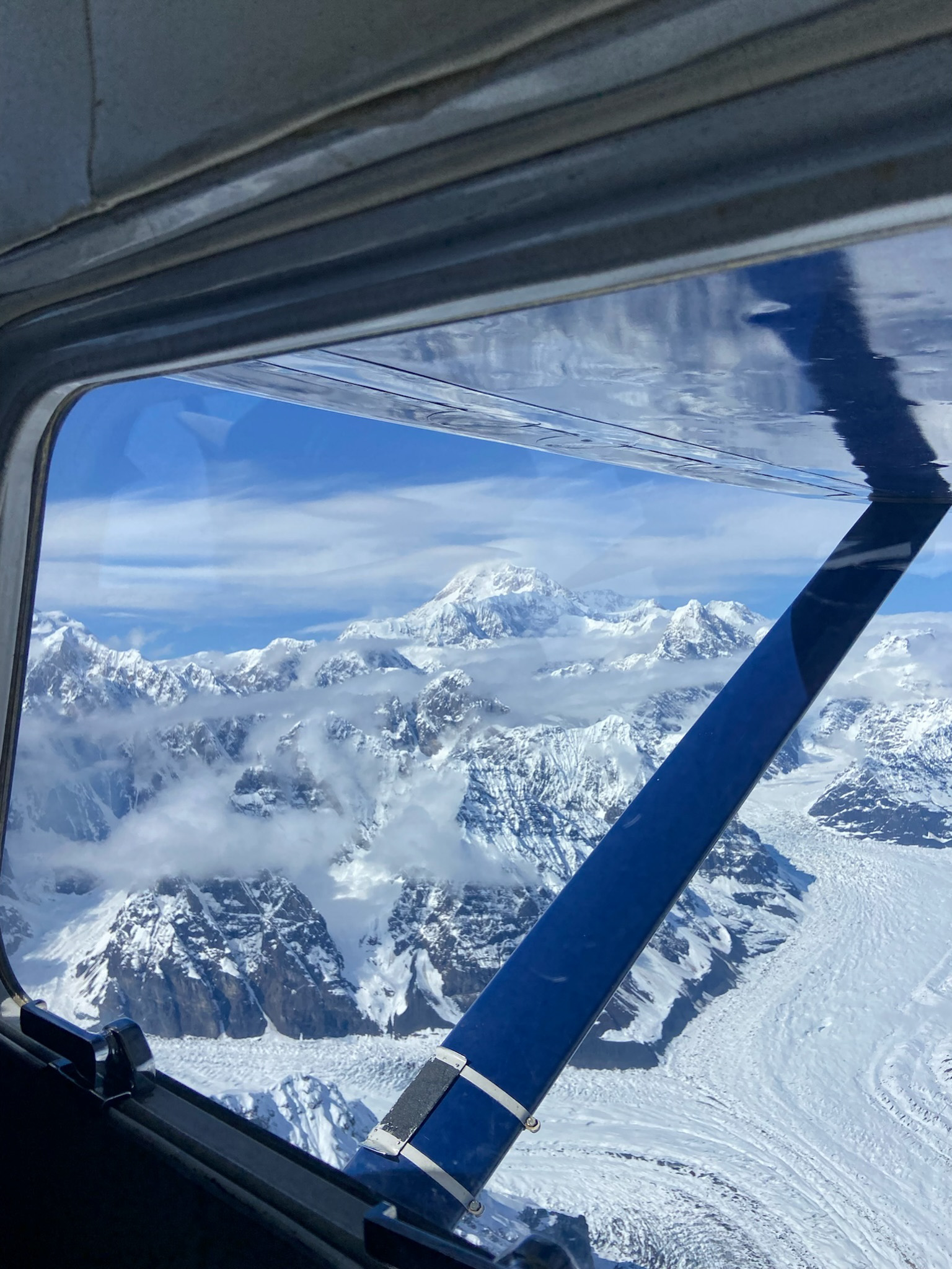 First glimpse of Denali from the Cessna. Ruth Glacier on the right.