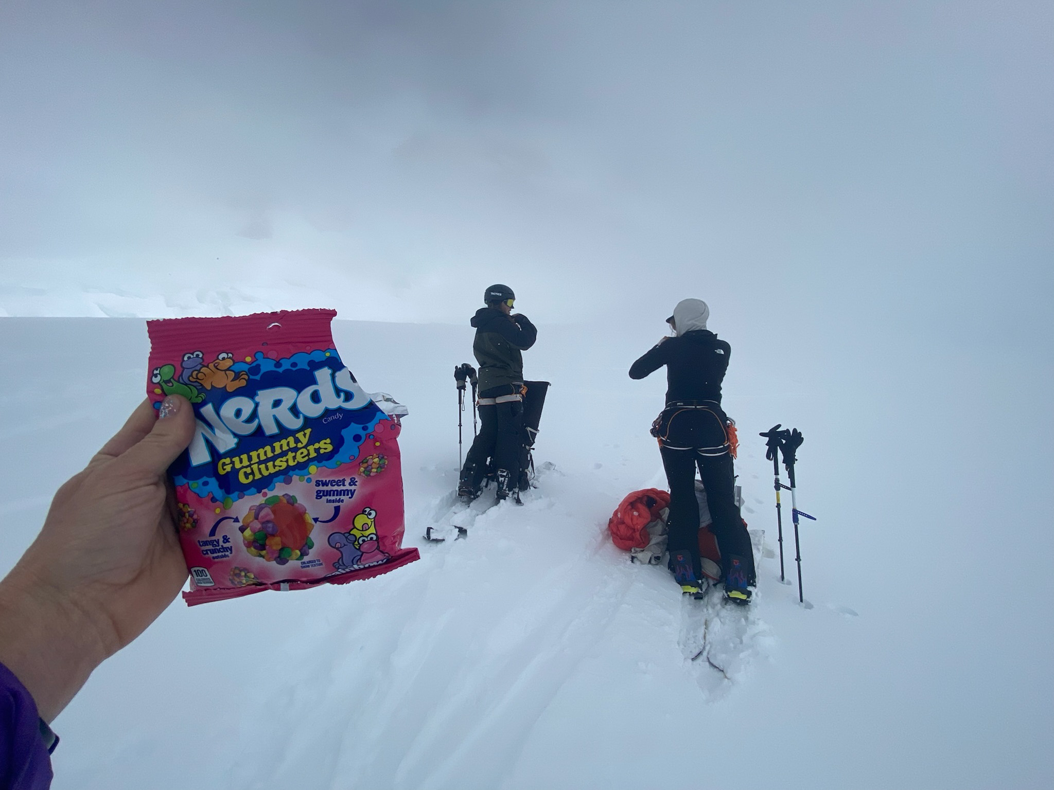 Kaytlyn is relatively new to splitboarding. Her main endeavor is ultra-running, but unfortunately, she is missing this season due to hip dysplasia. She has a lot of energy and I think this trip she is learning the ways of patience. Then there is me, I am a snowboarder and I am learning, quite literally, the ropes. Knots and ropework are a bit of a foreign language so I am happy to have the experience of Kaytlyn and Amanda to learn from.
