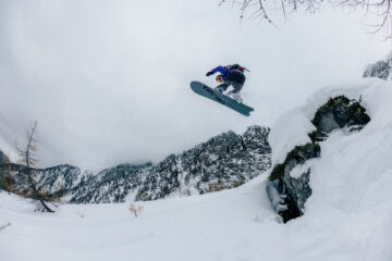 Day two brought a bigger mission and heavier weather. We skinned kilometers up a drainage and reached the ridge in full whiteout. Visibility was poor and avy danger was still high, so we had to keep it disciplined with one rider at a time until finding better light and lower angled terrain. Nothing heroic was ridden, just solid turns, small features, and making the most of imperfect conditions. A reminder that you do not need to ride steep and complex lines to have fun and enjoy good company.