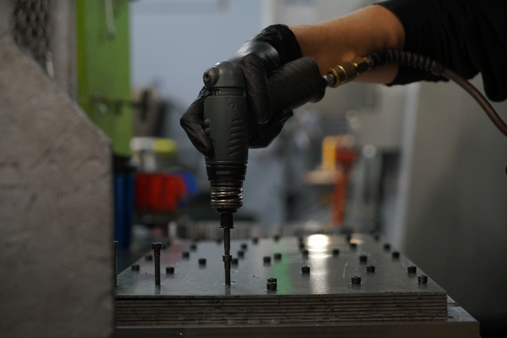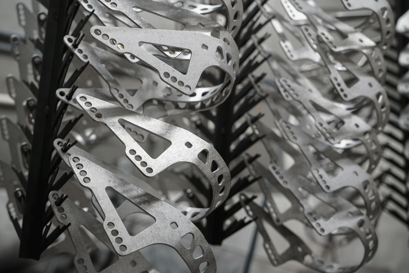 Our product graphics were originally all laser etched, but we have been pad printing in-house since 2012 and it has opened up a world of possibilities for product graphics. Not only is it faster, more colorful, and more consistent ….it’s super fun. We select, test, and color match our own inks and every Spark product with graphics has been hand-printed by one of our own employees. Pre-assembly is the final preparation before a part hits the assembly table. Every final product is a little different, but pre-assembly generally includes a mix of printing, bending, fitting, and even baking.