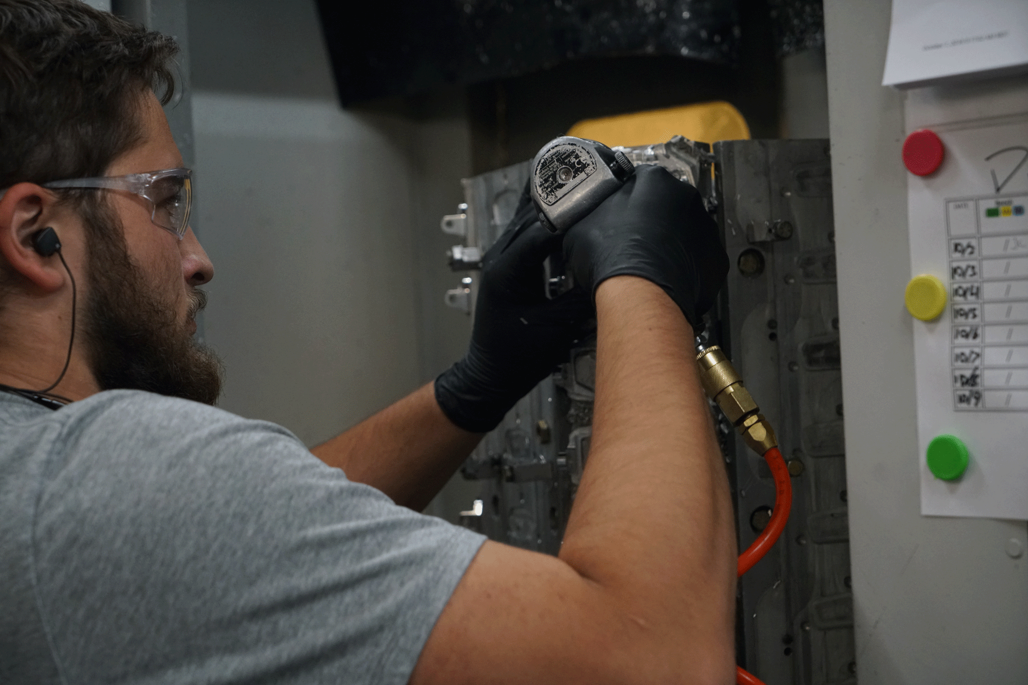 We do almost all of our plastics in house, from the smaller pieces like snap blocks, all the way up to our larger parts such as our Rip 'N' Flip highbacks and Pillow Line straps! We now have two injection molding machines to keep up with the growth in this area of our manufacturing. One of the coolest aspects of our plastics programs is that we are also creating all of our own molds in our machine shop.