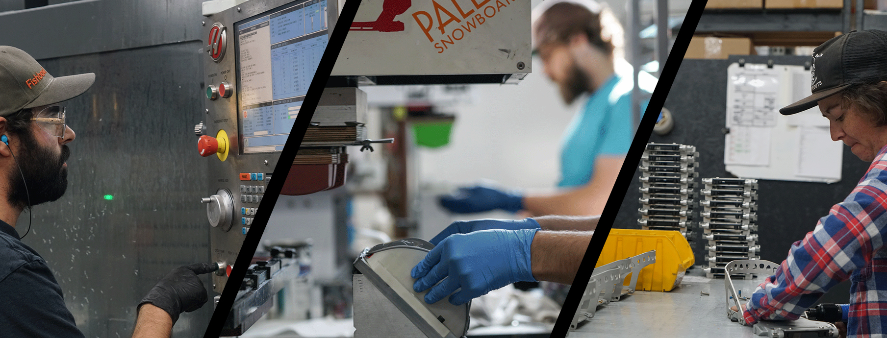 Our modern assembly line is equipped with a grip of air guns, several quality control checkpoints, an incredible team of detail-oriented hardworking guys and gals, and everything from hip hop to hair metal blaring from the shop speakers. Beyond the eye-catching technology in our factory, Spark R&D’s greatest asset is its people. Our team is as passionate about putting out good product as they are about shredding with it in the mountains nearby.