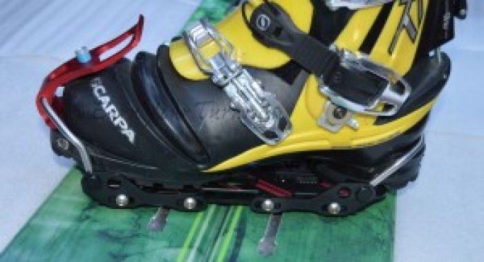 Spark R&D’s Dyno DH is a clean, functional, relatively lightweight hardboot binding system. The boot plates take advantage of the snap-ramp locking mechanism developed with the Tesla binding. This eliminates the need for a pin to hold the binding to the splitboard pucks, as well as the potential for losing it. Simply slide the plate over the pucks and snap the ramp down at the toe to lock it on. http://www.earnyourturns.com/31632/first-look-spark-rd-dyno-hardboot-binding/