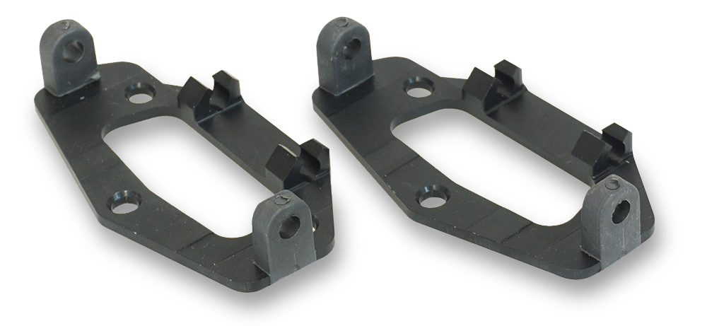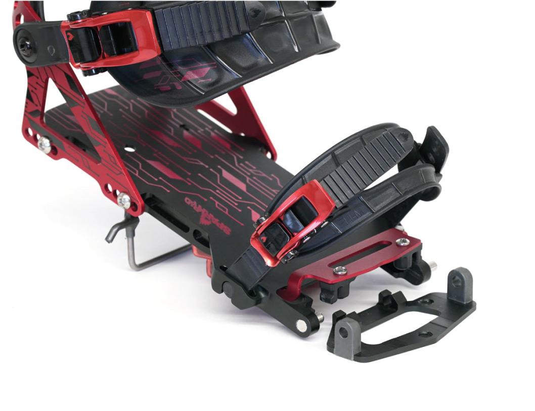 We have enhanced several of our binding and crampon components using a manufacturing technique called overmolding. By injection molding a proprietary thermoplastic blend over and through existing aluminum or steel parts several key areas of friction and wear are eliminated.